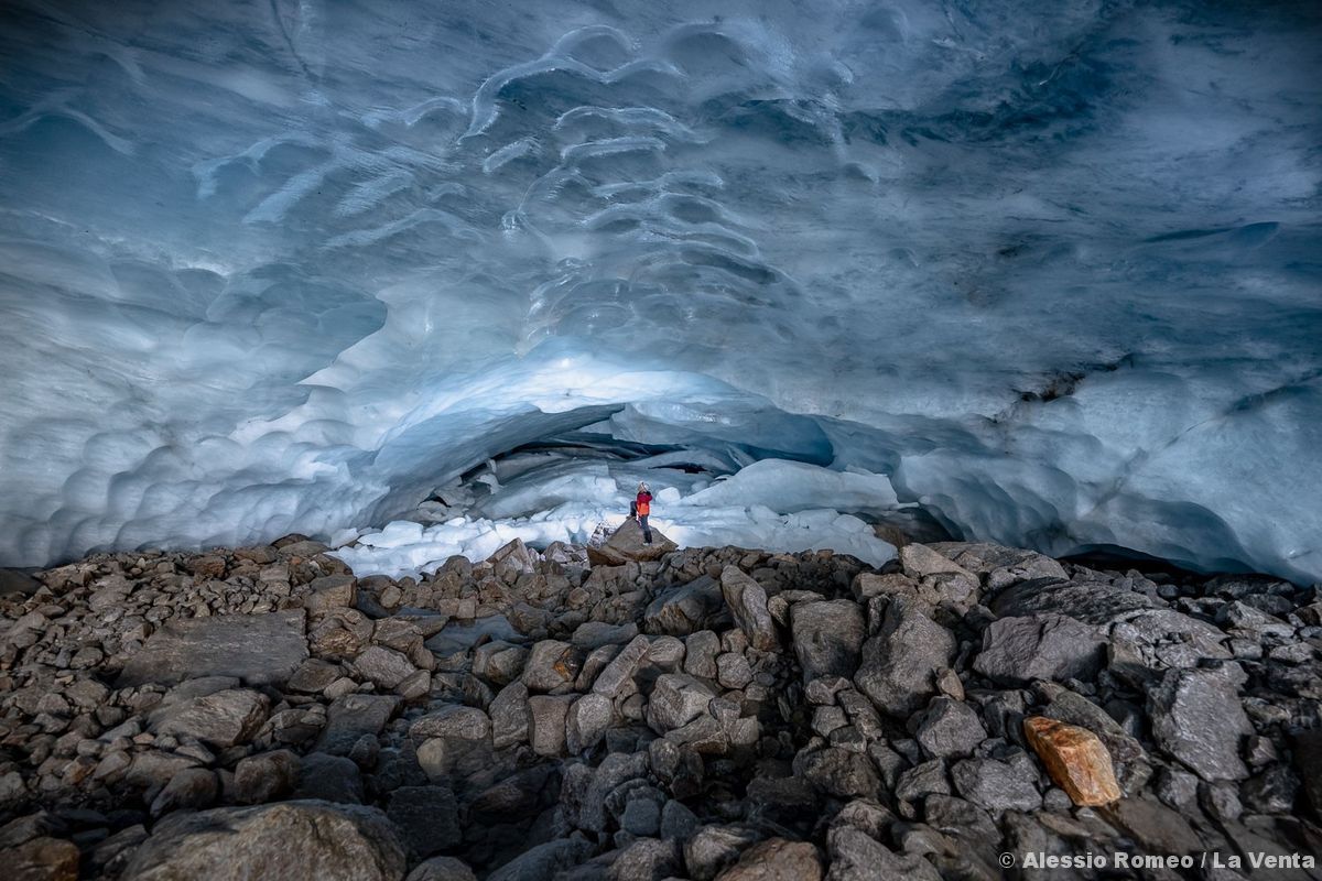 Las más conocidas, exploradas y representadas desde hace siglos, son las que se encuentran en el frente de los glaciares, de donde salen las aguas de deshielo en los meses más cálidos del año. También existen cavidades en el contacto, creadas por la confluencia de torrentes provenientes del exterior, que se cuelan bajo el hielo debido al poder de fusión que sus aguas (a una temperatura superior a la de fusión) ejercen sobre el hielo. Estas cavidades, en particular, han sido objeto de estudio recientemente por algunos de nosotros, ya que representan, en nuestra opinión, un factor importante en la reducción de la masa de los glaciares, un fenómeno, además, bastante invisible para quienes analizan y cuantifican el balance de masa de los glaciares únicamente mediante imágenes satelitales.